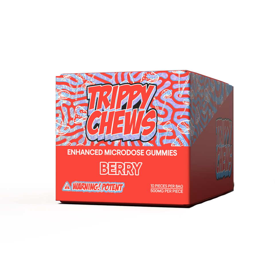 Trippy Chews 10 CT, our heavy-hitting functional mushroom gummies that deliver profound effects with exceptional flavor. Each bag contains 10 potent gummies infused with 5 grams of premium mushroom extract, carefully formulated to provide a balanced yet powerful experience.